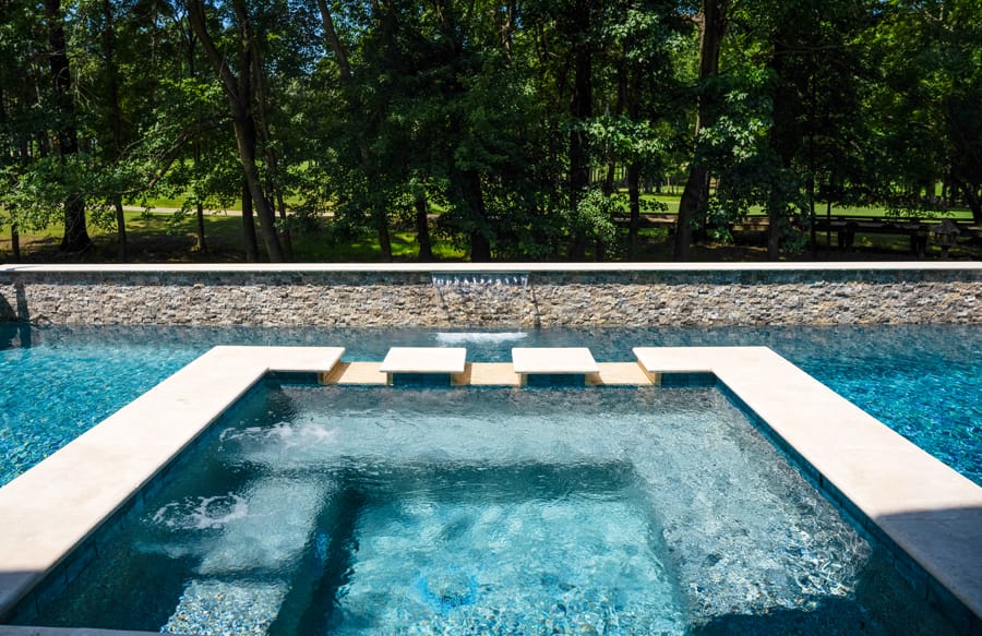 • SpasGunite spa designs, including elevated, interior, and rimflow