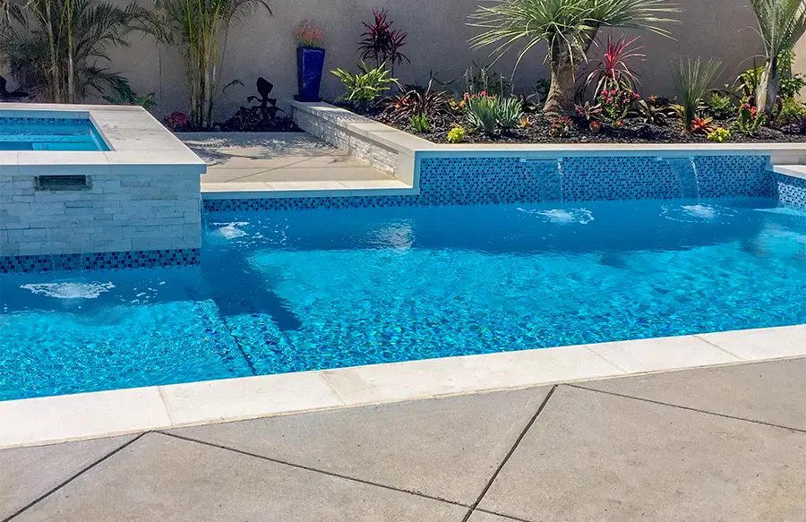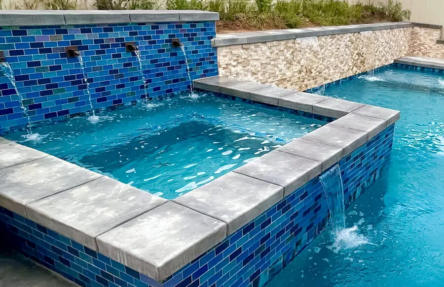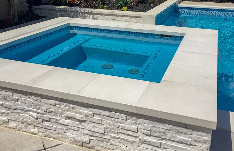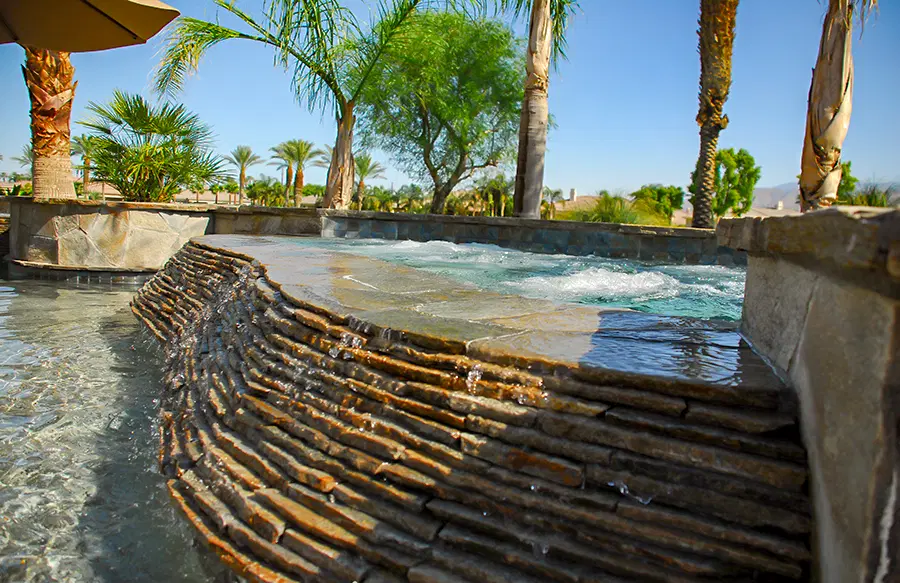 • SpasGunite spa designs, including elevated, interior, and rimflow