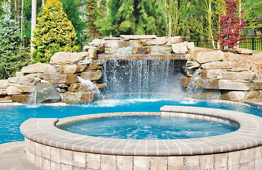 • SpasGunite spa designs, including elevated, interior, and rimflow